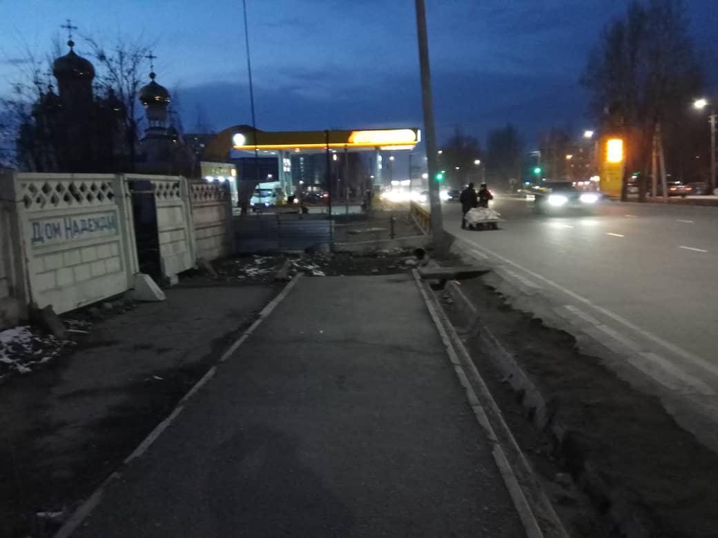 В 12-м микрорайоне вдоль Южной магистрали пешеходная дорожка упирается в заправку. Об этом 24-kg.com сообщил читатель.