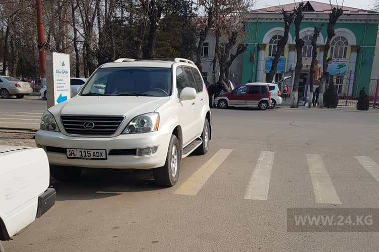 Хамское отношение водителей к пешеходам наблюдается и в Оше. Этот оставил машину на зебре на пересечении улиц Моминова и Ленина.