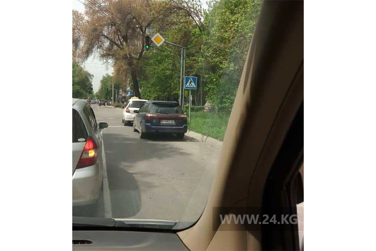 На пересечении улицы Боконбаева и бульвара Эркиндик автомобиль стоял прямо на перекрестке.