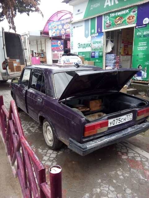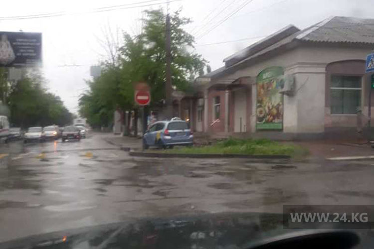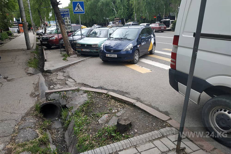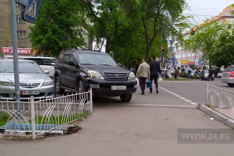 На пересечении улиц Кулатова и Элебаева машина службы такси тоже перекрыла проход.