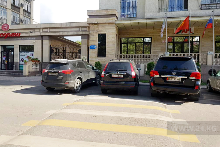 Обычное место парковки для некоторых автовладельцев — тротуар на улице Манасчи Сагынбая у входа в Чуй-Бишкекское управление юстиции.