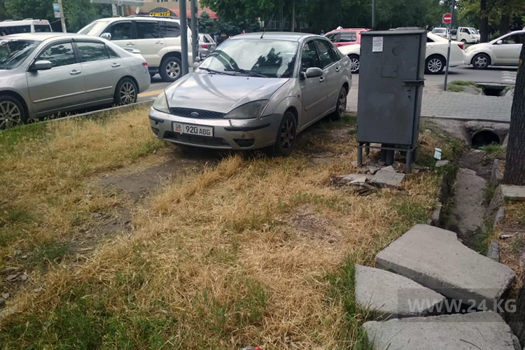 Если пешеходный переход и тротуары заняты, то чудаки парковки могут встать и на газоне. Фото сделано на перекрестке улиц Токтогула и Логвиненко.