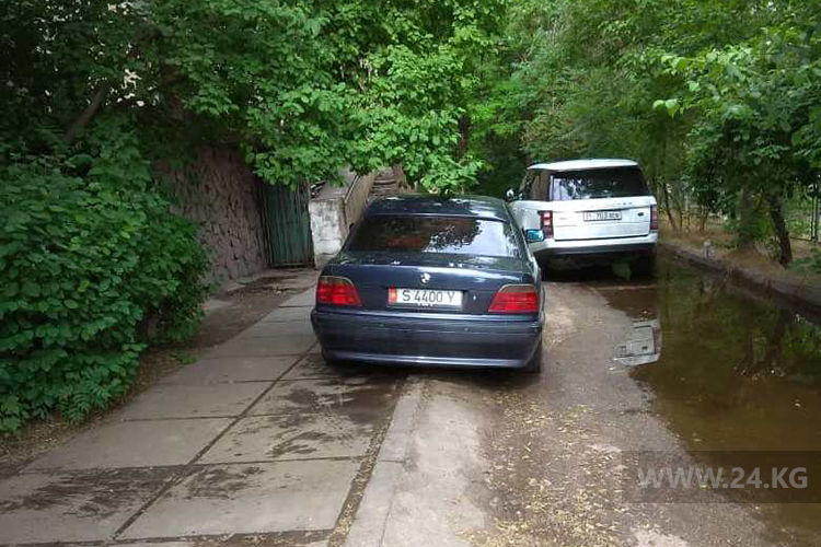 Читатель прислал фотографии из Оша. Там водитель перекрыл проход пешеходам на тротуаре.
