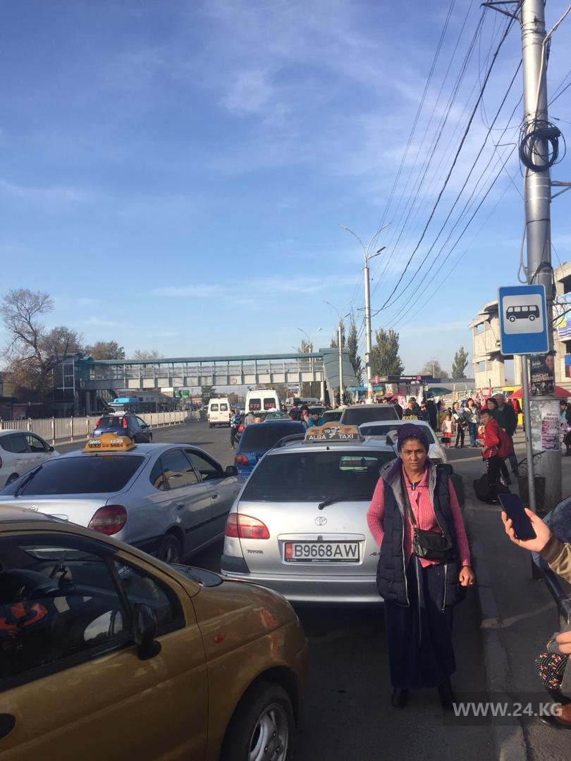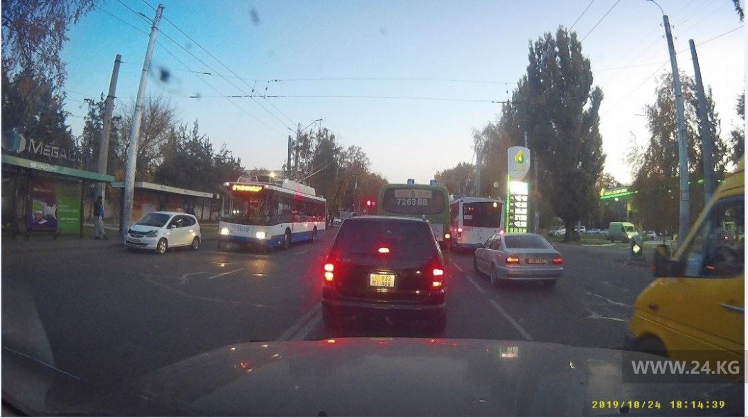 На остановке на перекрестке улиц Байтика Баатыра/Суеркулова таксист мешает водителям общественного транспорта.