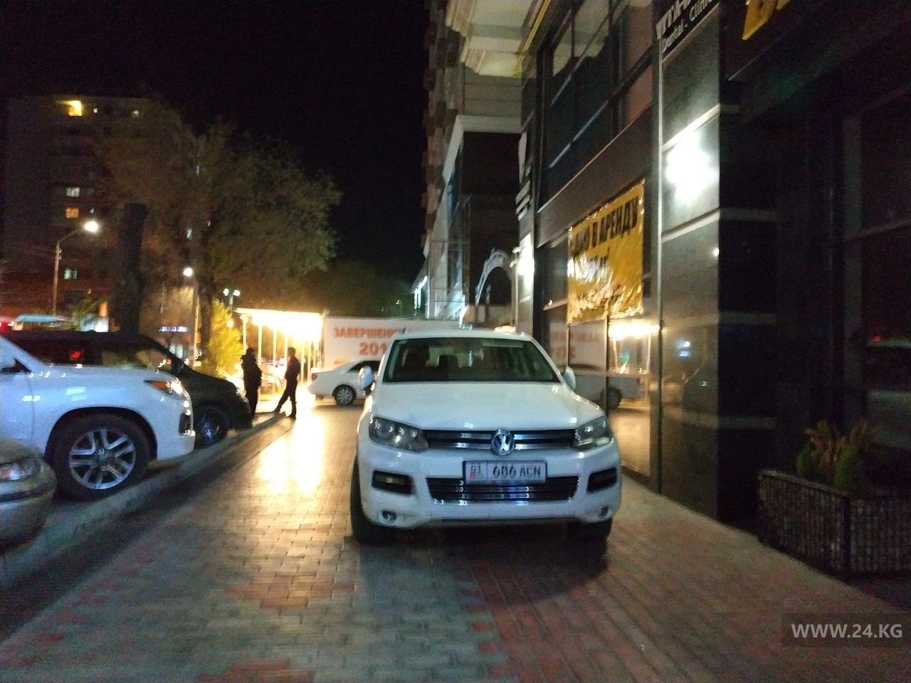 На тротуар на улице Токтогула заехал и владелец этого авто.