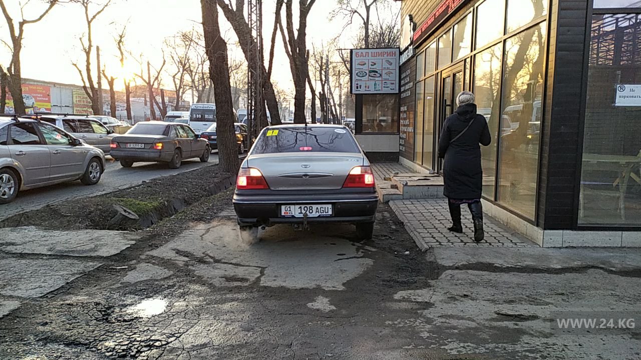 Не первый раз читатели присылают фото с улицы Шакирова города Оша. Там постоянно машины стоят на тротуаре.