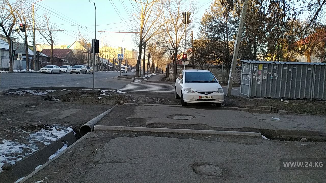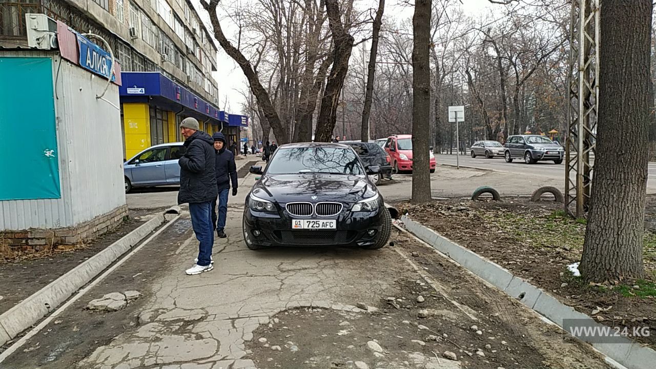 А этот водитель заехал на тротуар на улице Токтогула.