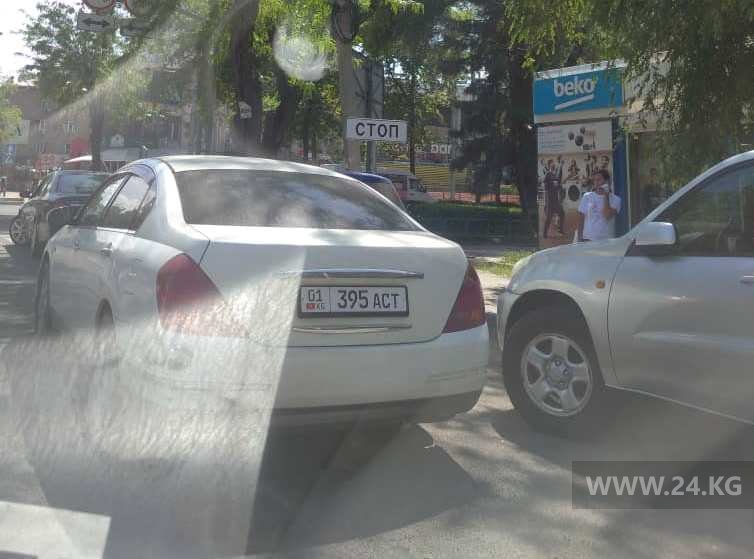 Другие водители встали на разметку пешеходного перехода на пересечении улиц Боконбаева и Усенбаева.