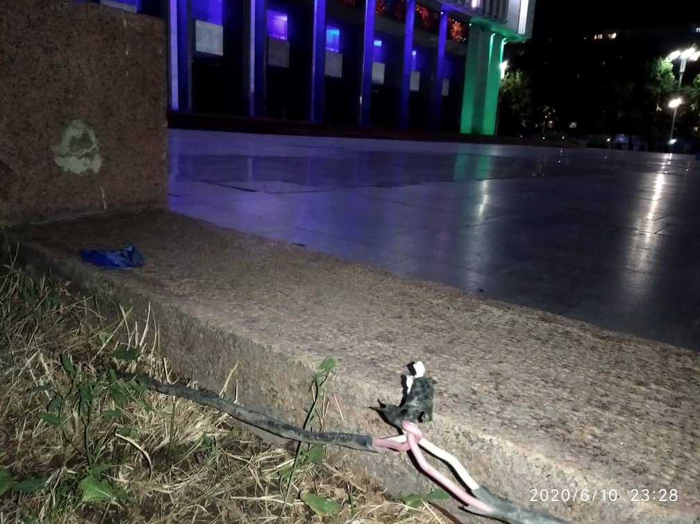 В Бишкеке с западной стороны филармонии на бордюре лежит оголенный провод. Об этом 24-kg.com сообщил читатель.