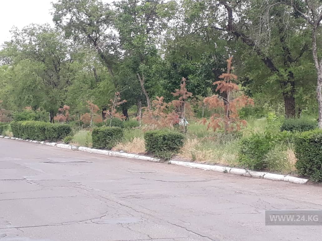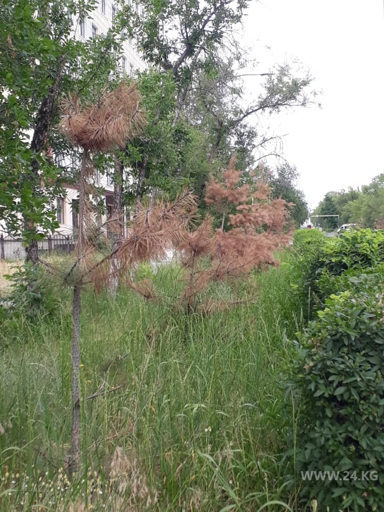 На улице Ленина в Кара-Балте засохли более 50 сосен. Об этом 24-kg.com сообщил читатель.
