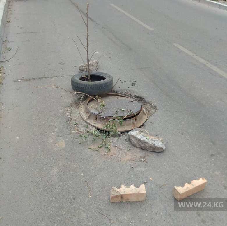 Яму в районе пересечения улиц Кайназаровой и Джамгерчинова отремонтировали тротуарной брусчаткой. Об этом 24-kg.com сообщил читатель.