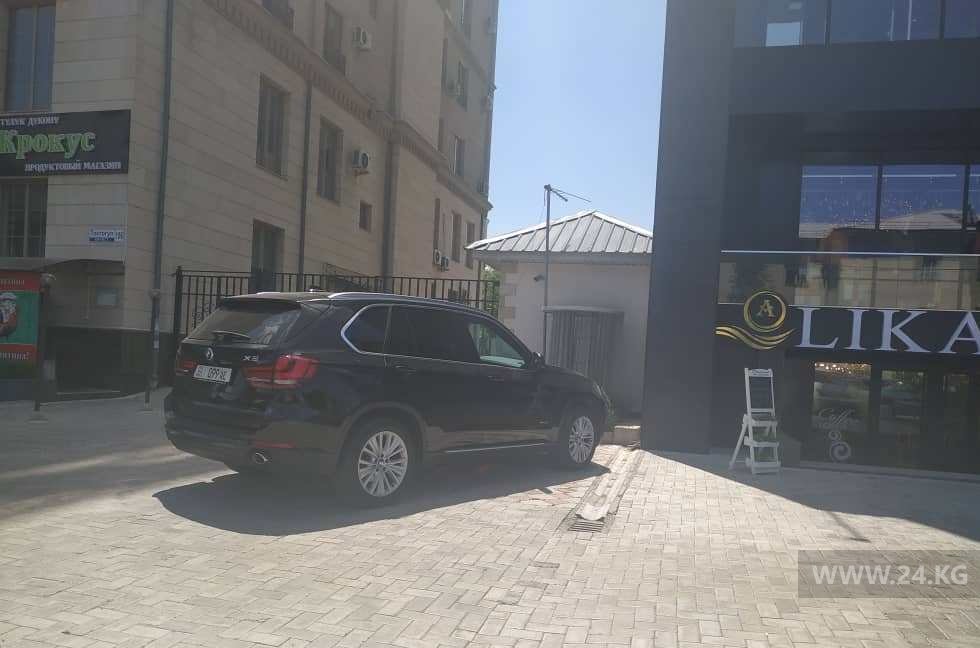 На тротуаре в районе пересечения улиц Токтогула и Орозбекова оставили внедорожник.