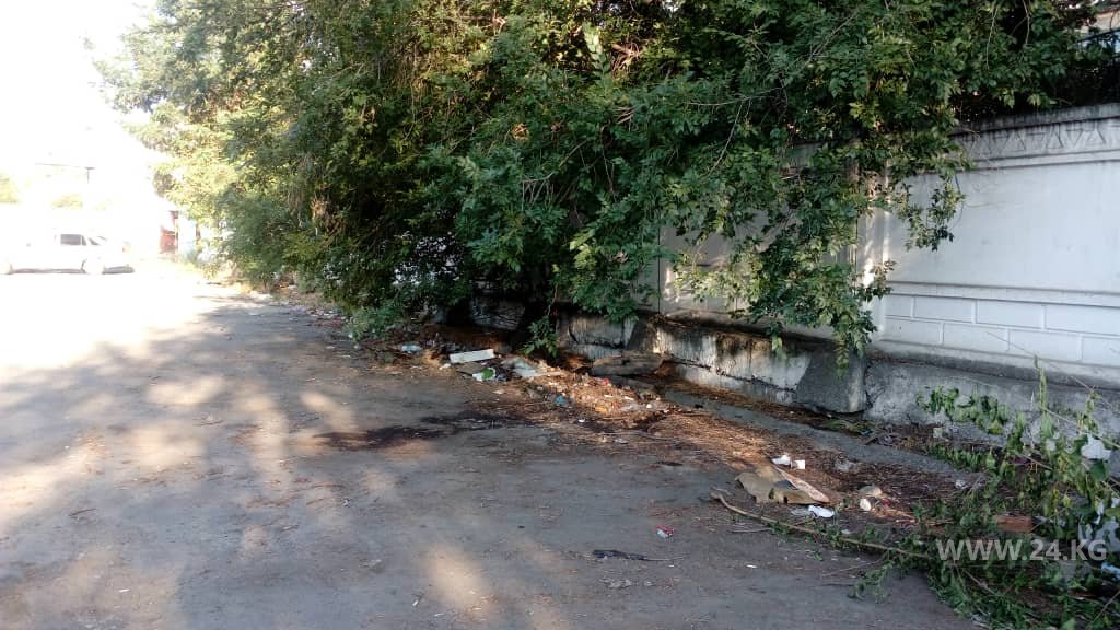 Антисанитария. Возле РОВД в Бишкеке не убирают мусор