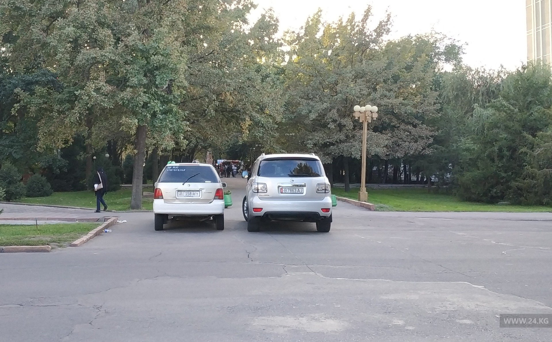 Возле Кыргызского национального драматического театра имени Т.Абдумомунова автолюбители закрыли проход в парк.