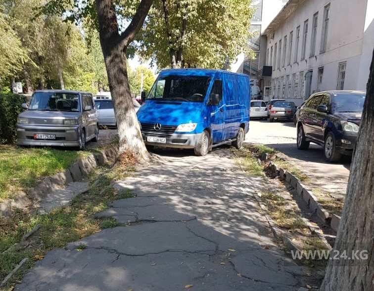 «Поставил бус прямо на тротуаре. Пешеходам приходится обходить, перепрыгивая через арык», — написал очевидец. Фото сделано на улице Орозбекова.