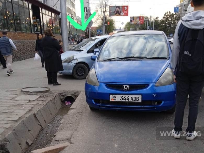 В районе пересечения улиц Боконбаева и Калыка Акиева водитель заехал на газон.