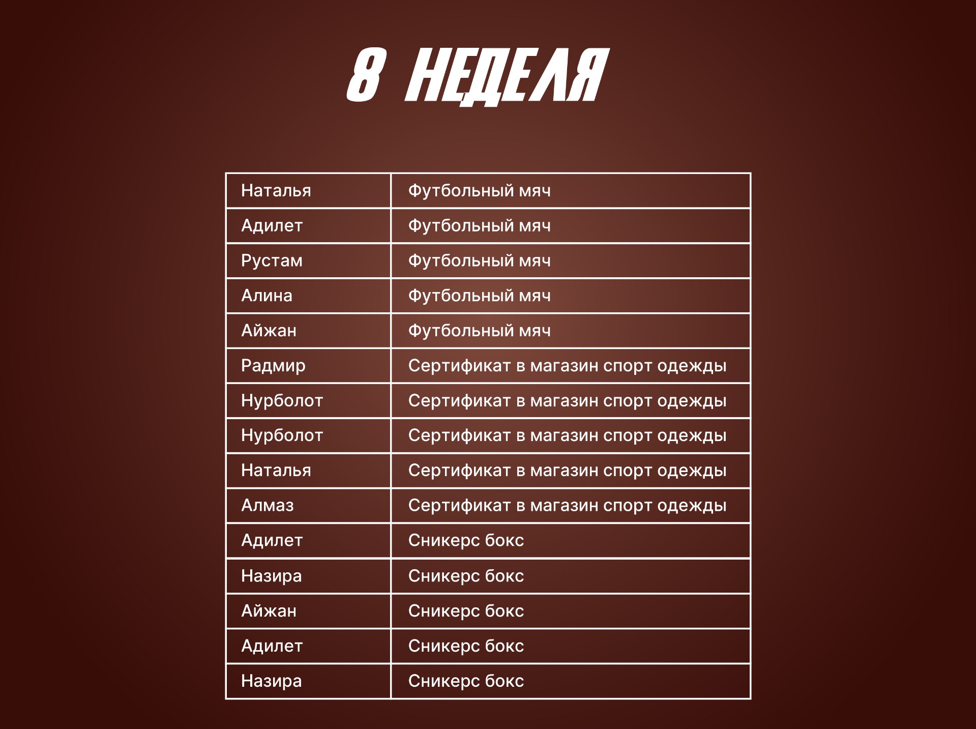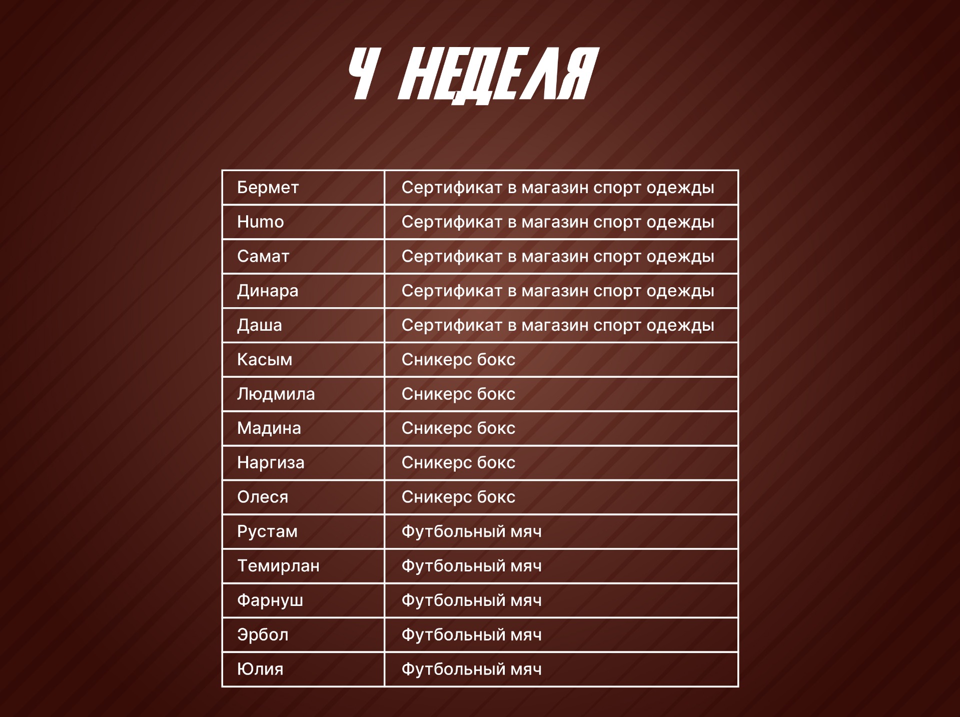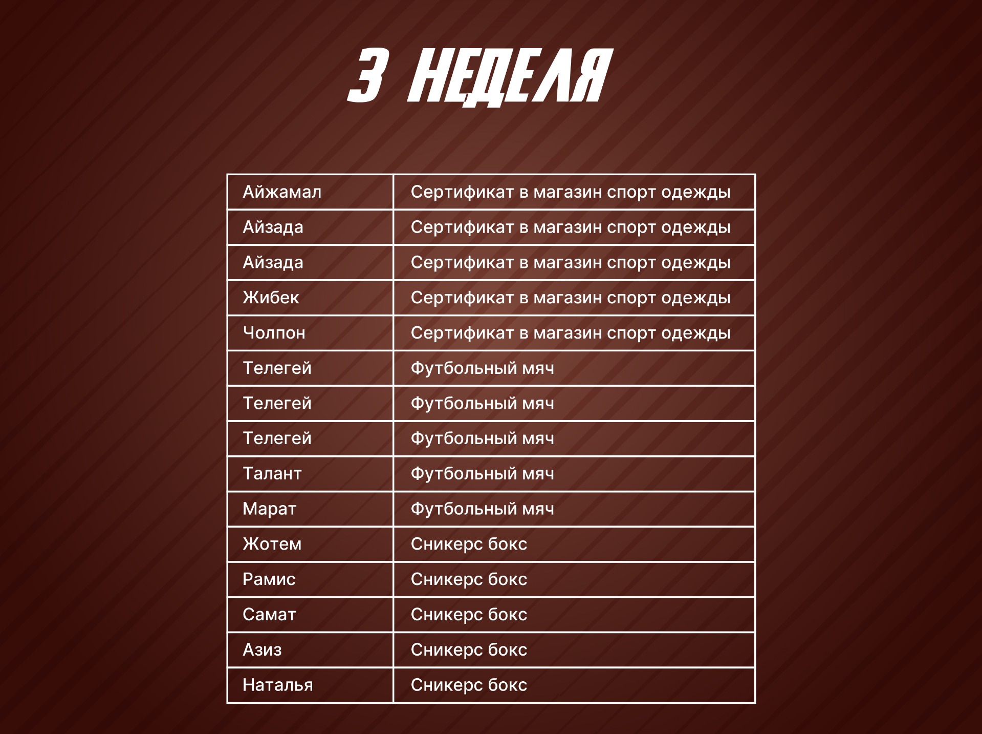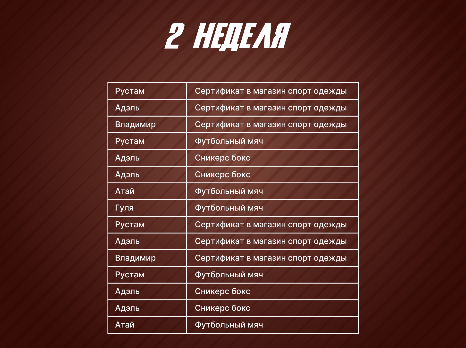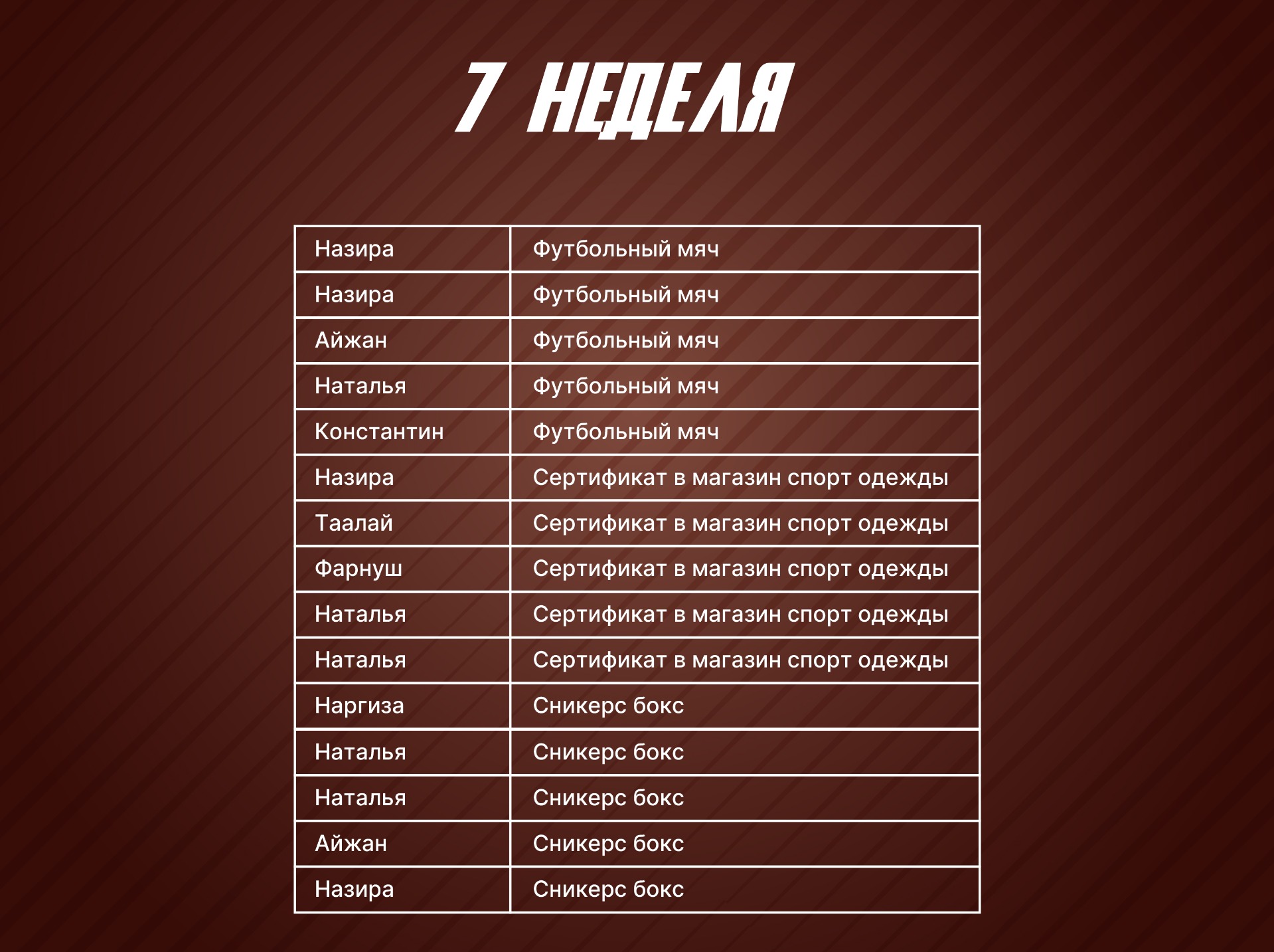 Розыгрыш проходил каждый четверг с 23 мая до 10 июля при помощи генератора рандомных чисел https://randomus.ru/.
