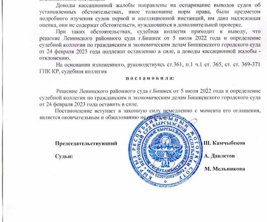 Он рассказал, что все три судебные инстанции признали его увольнение из компании незаконным. Затем все три судебные инстанции признали незаконной и недействительной сделку по продаже в собственность ОсОО «Тансу Индастриал» торгового центра ОсОО «ТАНСУ».