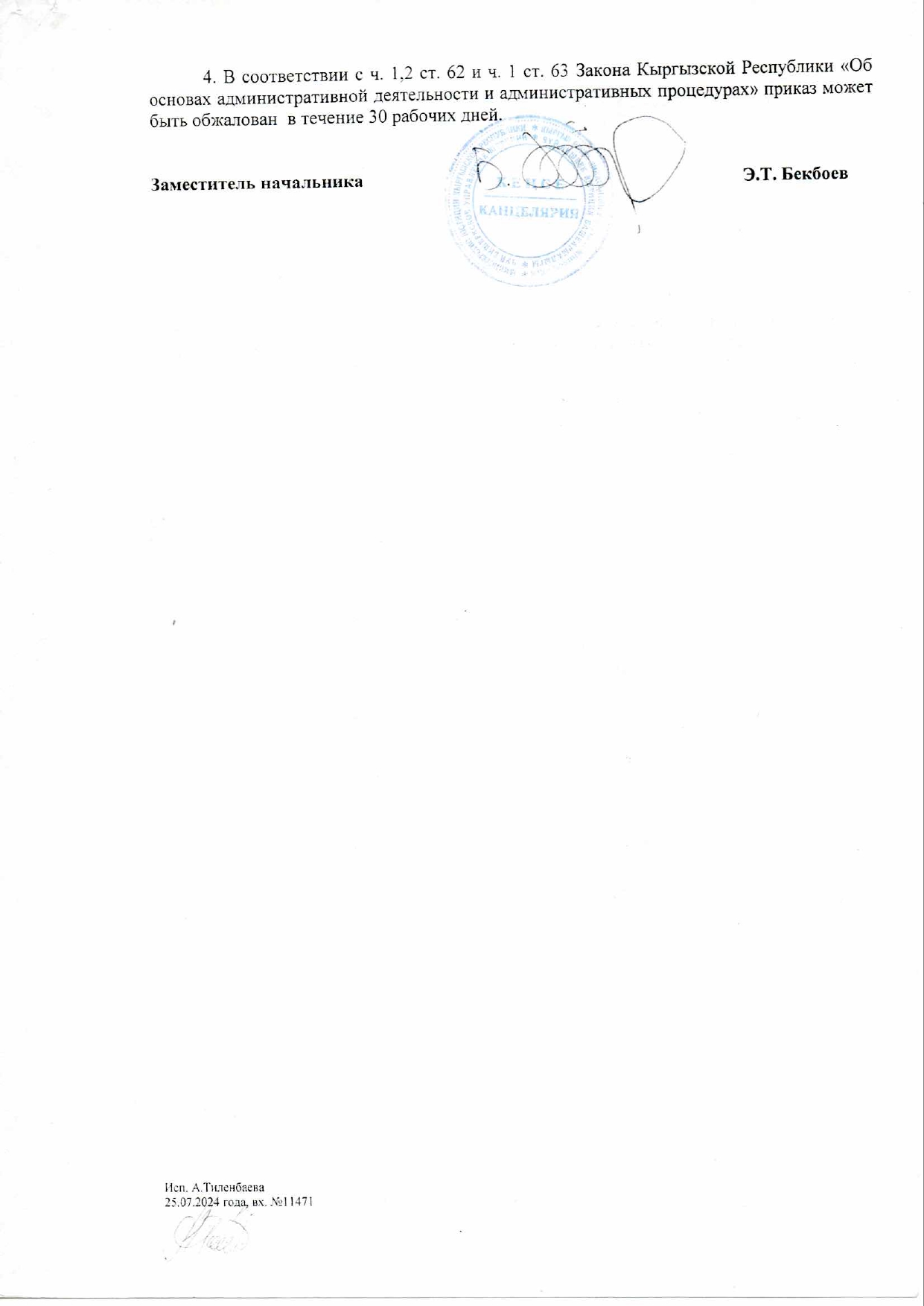 Сначала Чуй-Бишкекское управление юстиции, куда обратился предприниматель после получения решения суда, дважды провело перерегистрацию ОсОО, исключив из списка братьев Билаловых, и дважды отменило свое же решение. После череды разбирательств Закерья Тахиров в третий раз обратился в Чуй-Бишкекское управление юстиции с требованием исполнить решение суда и исключить Билаловых и Марата Ханмурзина из базы Минюста. Но 30 июля 2024 года получил приказ об отказе в проведении государственной перерегистрации в связи с тем, что ранее были отменены два предыдущих приказа от 28 сентября 2022 года и от 27 сентября 2023 года.