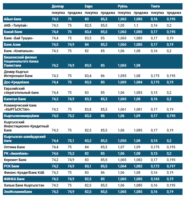 Курс доллара в коммерческих банках Кыргызстана на 16 июня