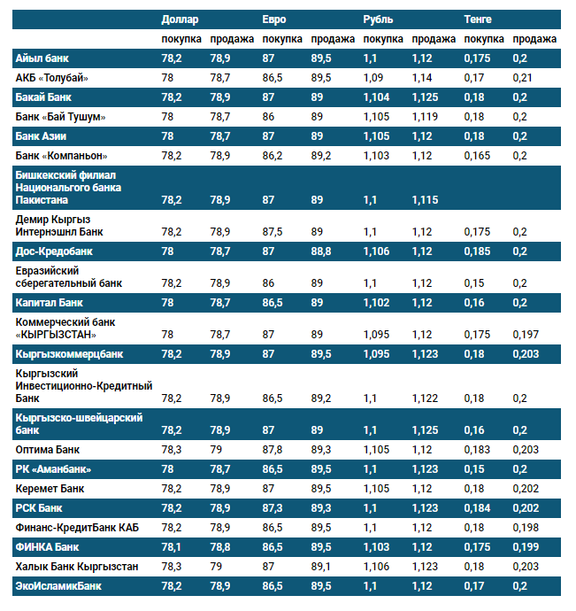 Курс доллара в коммерческих банках Кыргызстана на 2 июля