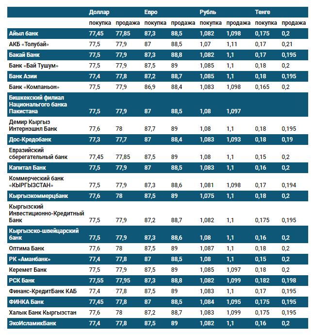 Курс доллара в коммерческих банках Кыргызстана на 9 июля