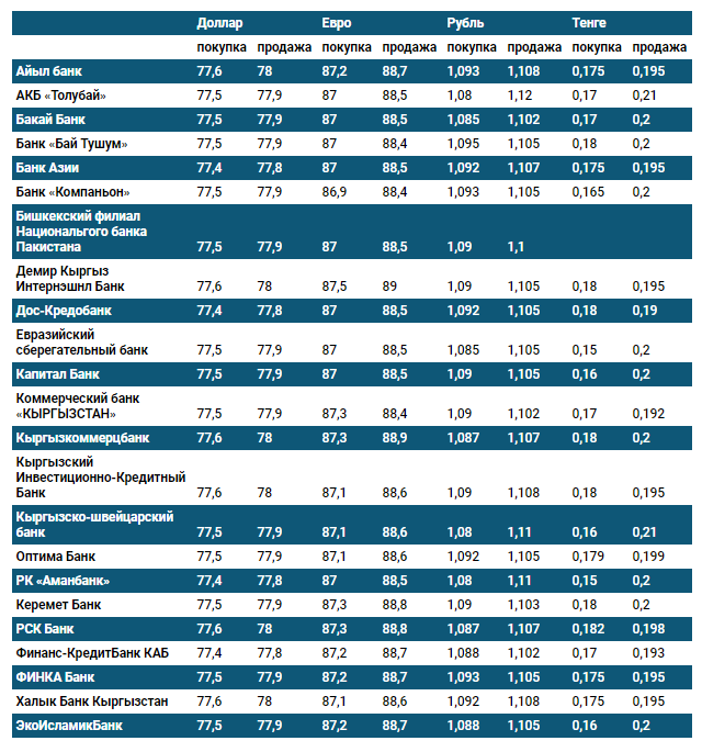 Курс доллара в коммерческих банках Кыргызстана на 13 июля