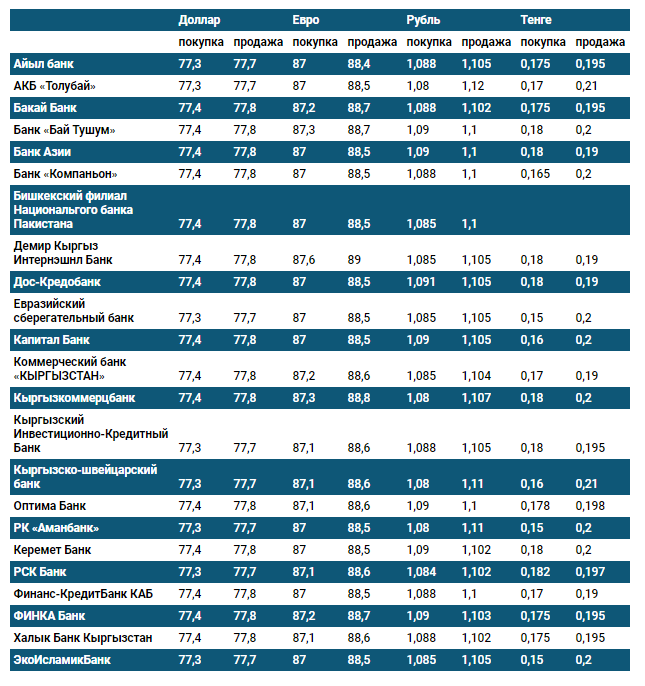 Курс доллара в коммерческих банках Кыргызстана на 14 июля
