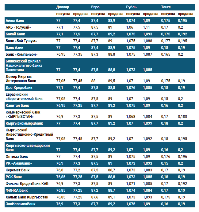 Курс доллара в коммерческих банках Кыргызстана на 21 июля