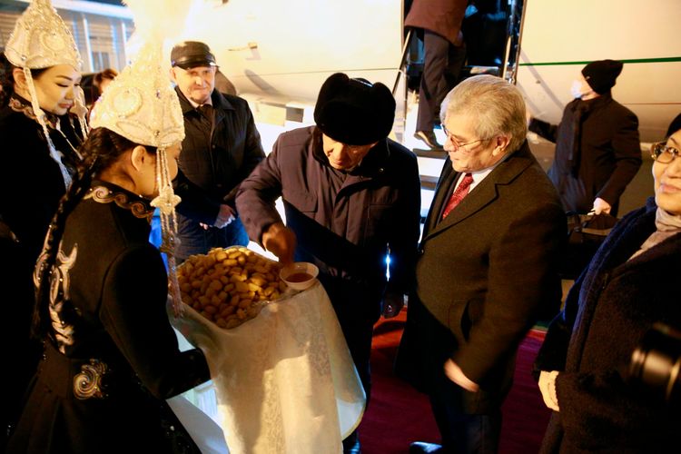 «Манас» эл аралык аэропортунан Рустам Миннихановду мамлекеттик катчысы Сүйүнбек Касмамбетов тосуп алды.
