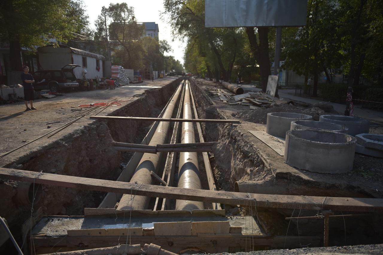 Ремонт теплотрассы на улице Токтогула проводит компания «Юнис Курулуш» по заказу ОАО «Бишкектеплосеть».