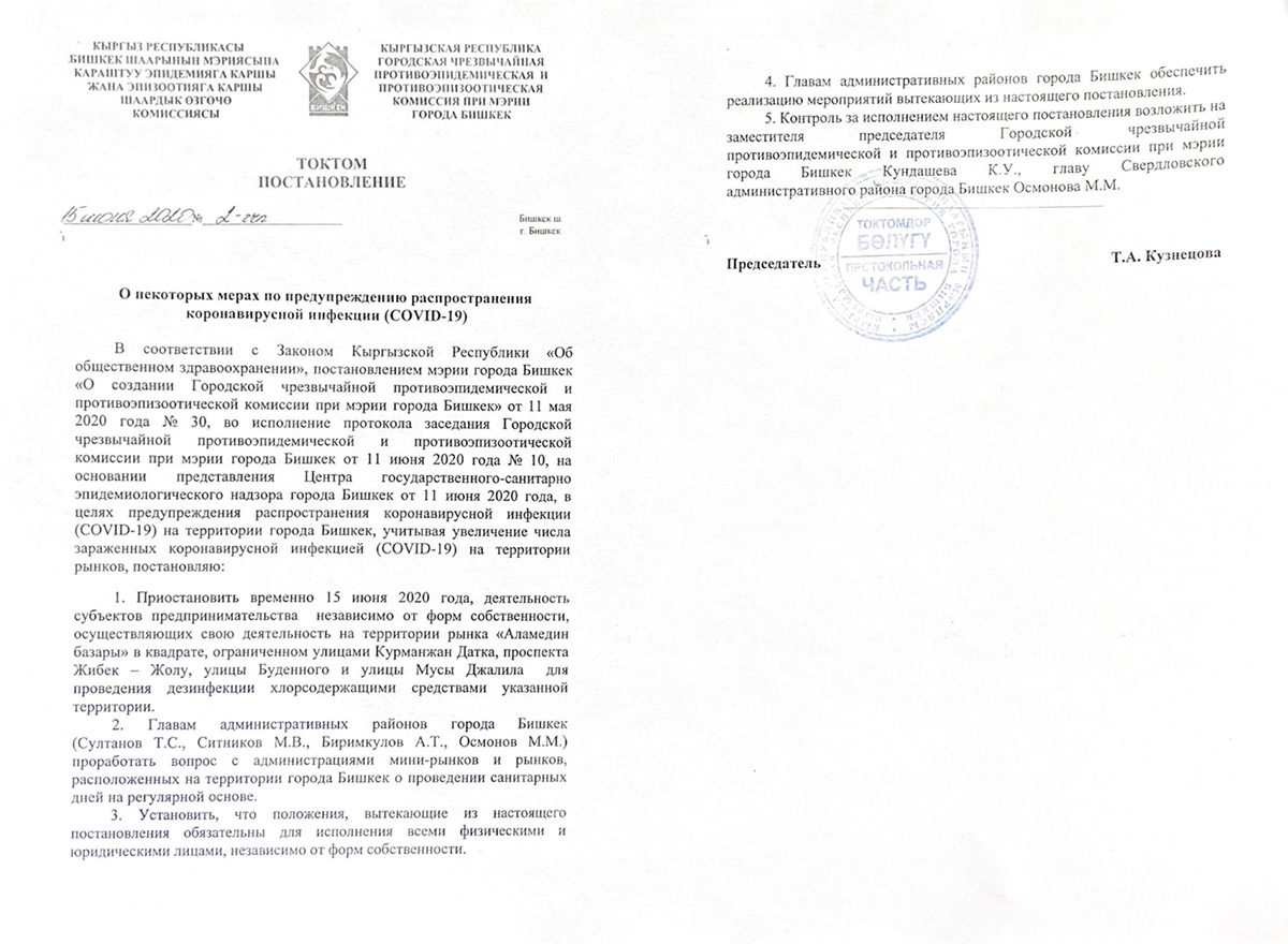 Напомним, что с 10 по 13 июня на обработку закрывали Орто-Сайский рынок.