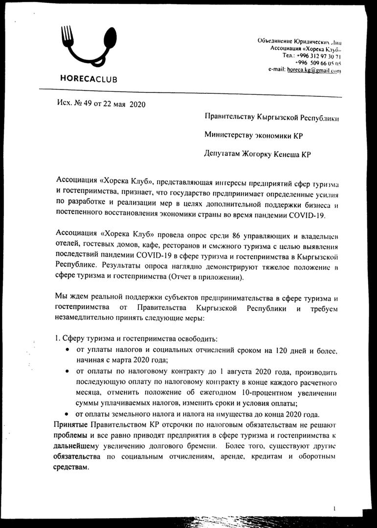 Рестораторы Бишкека просят амнистировать задолженности по налогообложению за период с 18 марта по 1 июля 2020 года. В марте из-за COVID-19 начался резкий спад торговли, многие рестораны не смогли вовремя рассчитаться по кредитам, оплатить коммунальные услуги и аренду.