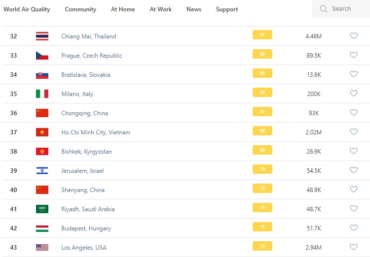 В рейтинге крупнейших городов мира по качеству воздуха World Air Quality на 8.30 Бишкек опустился на 38-е место.