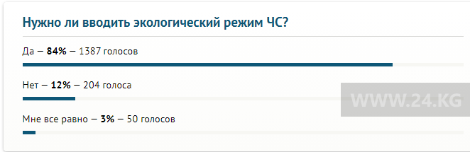 Большинство читателей 24.kg выступают за введение экологического режима чрезвычайной ситуации в Бишкеке. Таковы результаты опроса.