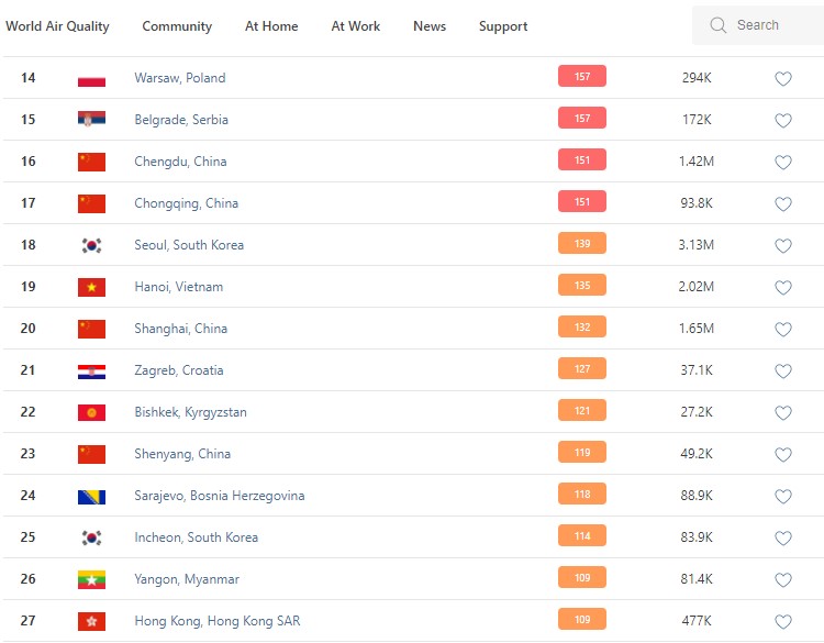 В 8.30 статус города отмечен как «нездоровый для чувствительных групп» (Unhealthy for sensitive groups). Индекс качества воздуха, по данным сайта, составляет 121 (AQI).