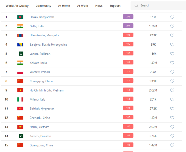 Отметим, что индекс качества воздуха (AQI) разделен на шесть категорий, указывающих на возрастающий уровень опасности для здоровья. Значение AQI выше 300 означает опасное качество воздуха, а значение ниже 50 — хорошее.