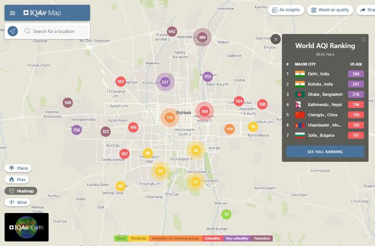 В рейтинге крупнейших городов мира по качеству воздуха World Air Quality Бишкек опустился на 30-е место.