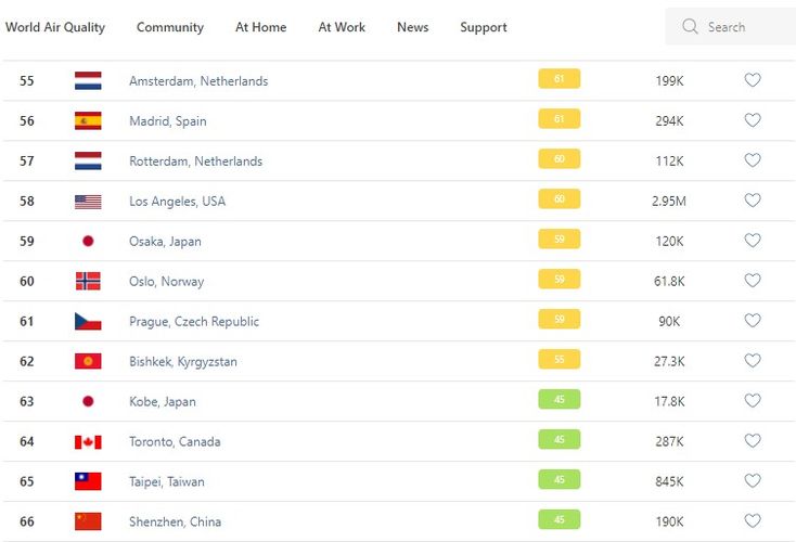 В рейтинге крупнейших городов мира по качеству воздуха World Air Quality Бишкек опустился на 62-е место.