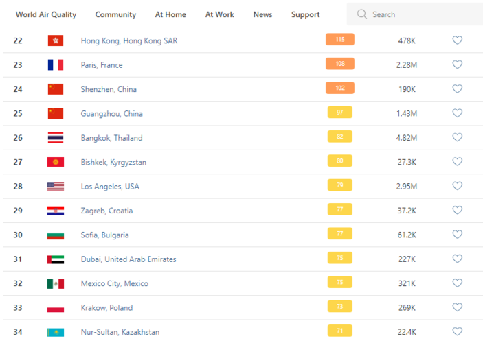 В рейтинге крупнейших городов мира по качеству воздуха World Air Quality Бишкек поднялся на 27-е место.