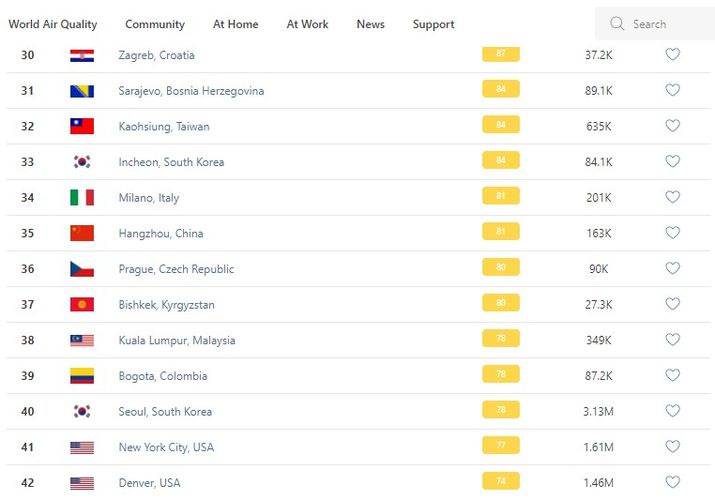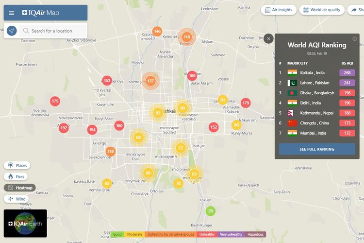 В рейтинге крупнейших городов мира по качеству воздуха World Air Quality Бишкек опустился на 37-е место.