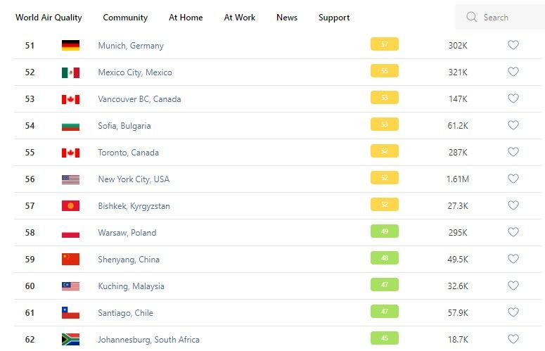 В рейтинге крупнейших городов мира по качеству воздуха World Air Quality Бишкек опустился на 57-е место.