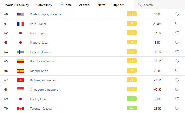 В рейтинге крупнейших городов мира по качеству воздуха World Air Quality Бишкек опустился на 67-е место.