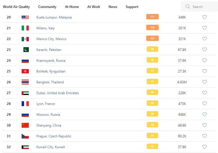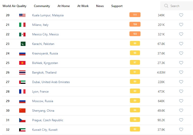 В рейтинге крупнейших городов мира по качеству воздуха World Air Quality Бишкек опустился на 25-е место.