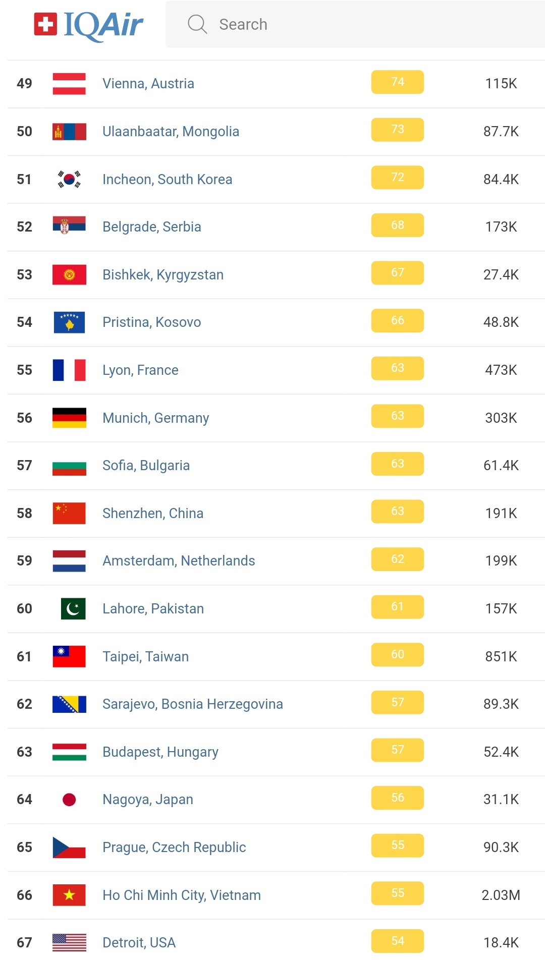 В рейтинге крупнейших городов мира по качеству воздуха World Air Quality Бишкек поднялся на 53-е место.