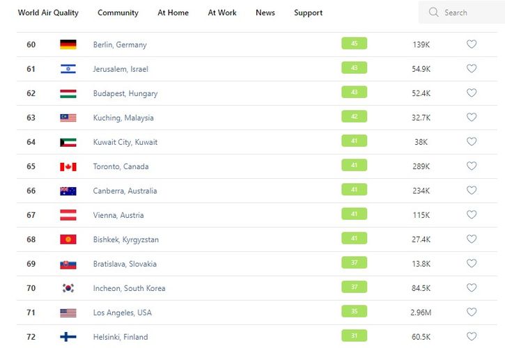 В рейтинге крупнейших городов мира по качеству воздуха World Air Quality Бишкек опустился на 68-е место.