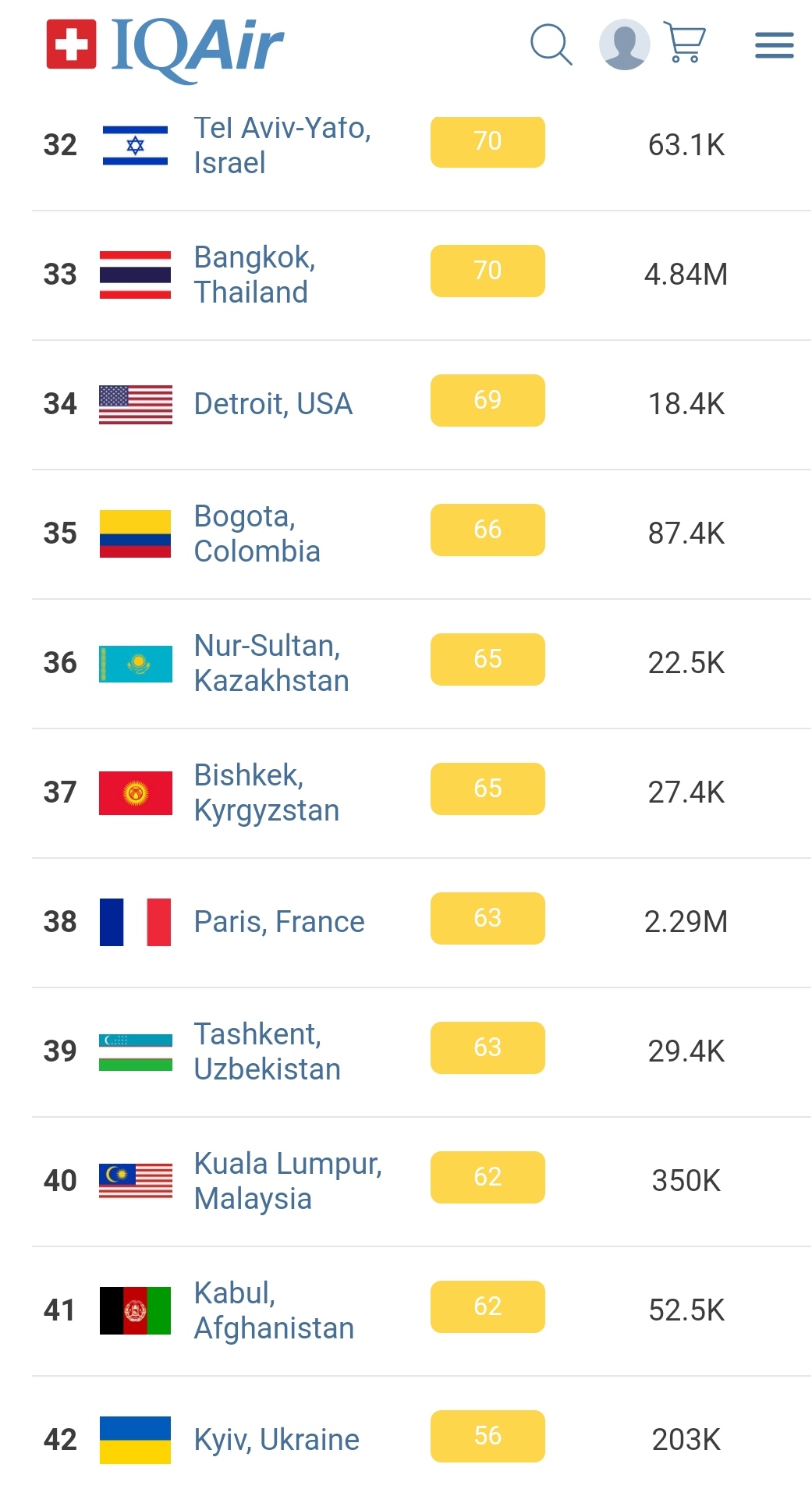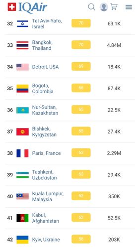 В рейтинге крупнейших городов мира по качеству воздуха World Air Quality Бишкек поднялся на 37-е место.
