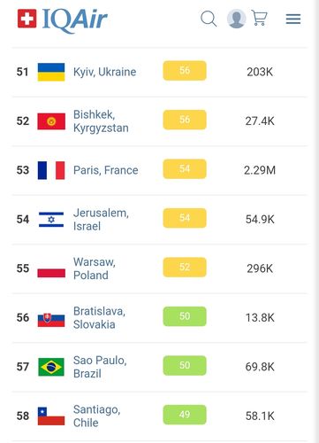 В 19.30 статус города отмечен как «умеренный». Индекс качества воздуха, по данным сайта, составляет 56 (AQI).