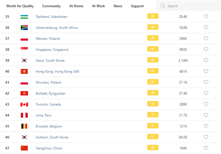 В рейтинге крупнейших городов мира по качеству воздуха World Air Quality Бишкек поднялся на 42-е место.
