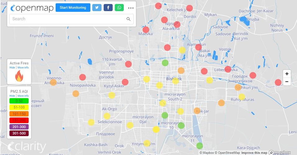 В рейтинге крупнейших городов мира по качеству воздуха World Air Quality Бишкек опустился на 40-е место.